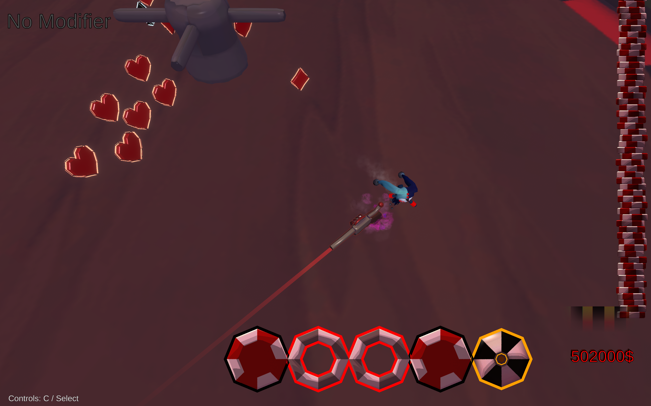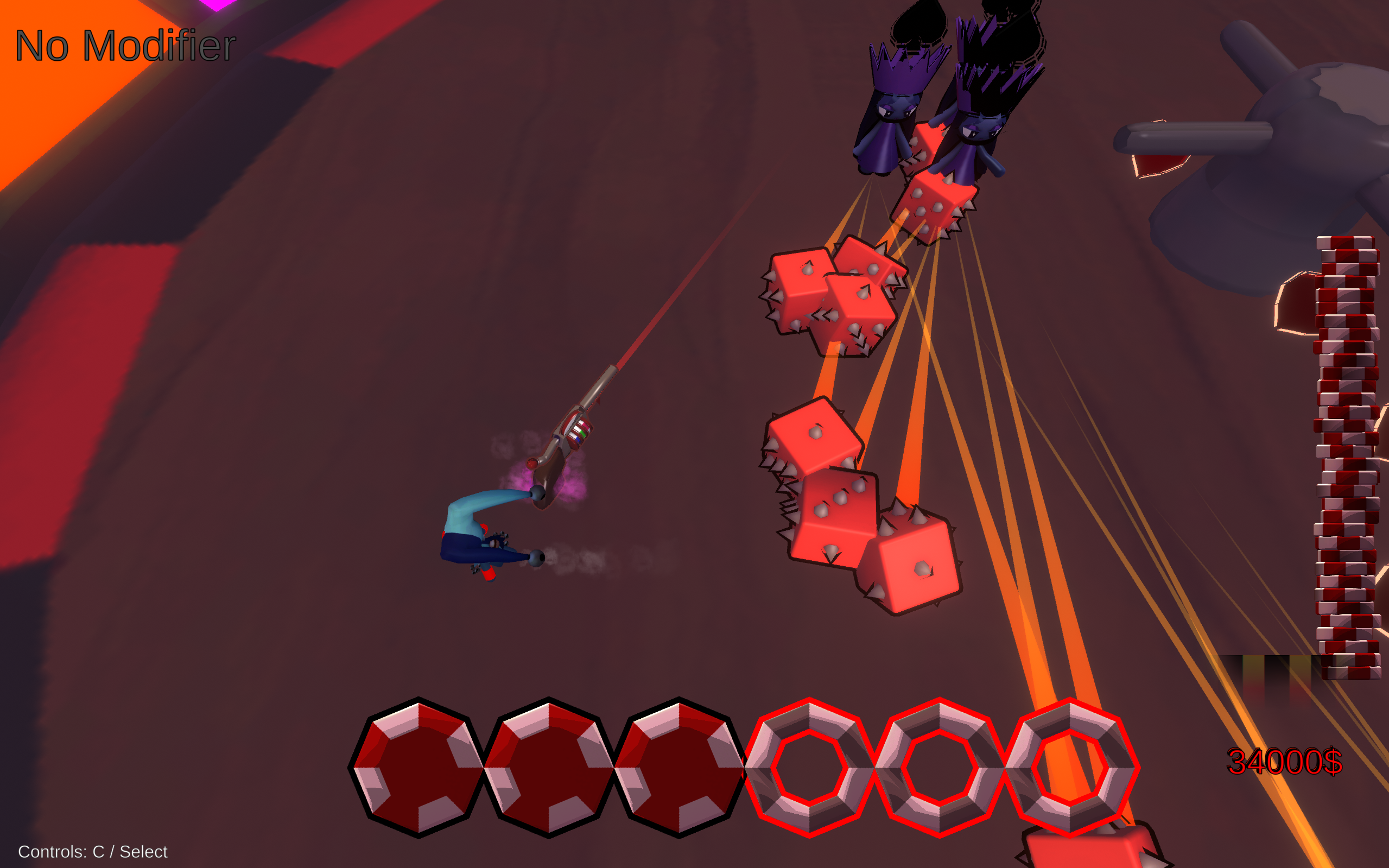 Deine Waffe verschießt zufällig verschiedene Kugeln; die man aber - Gott sei Dank - im Austausch zu Geld neu würfeln kann.