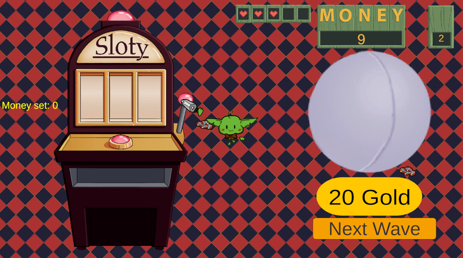 In unserem Game: "Shots ‘n‘ Slots" spielst du einen spielsüchtigen Goblin, der gegen Horden von Gegnern in einem Casino kämpfen muss. Dabei kannst du zwischen den Waves von Skeletten und Dämonen mithilfe einer Slotmachine mehr Geld erspielen, welches du dann prompt in einem Gacha-Automaten für potenzielle Upgrades ausgeben kannst. Doch gib acht, wenn du all dein Geld und sogar deine Patronen verspielst, hast du keine andere Wahl als dich zu ergeben oder zu sterben.