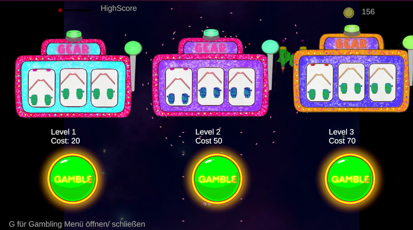 WASD zum bewegen, LMB zum Schießen, G für Gamble Menu