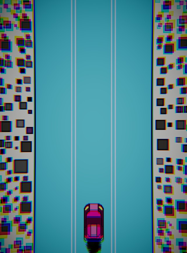 Man fährt mit einem Auto über die Lyrics von einem Song und setzt ihn somit zusammen.