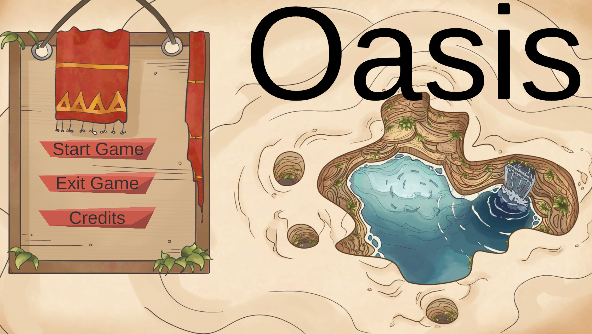 Der Spieler baut eine Kolonie in der Wüste auf, indem er Felder platziert, Ressourcen sammelt, Häuser errichtet und seine Bevölkerung wachsen lässt.