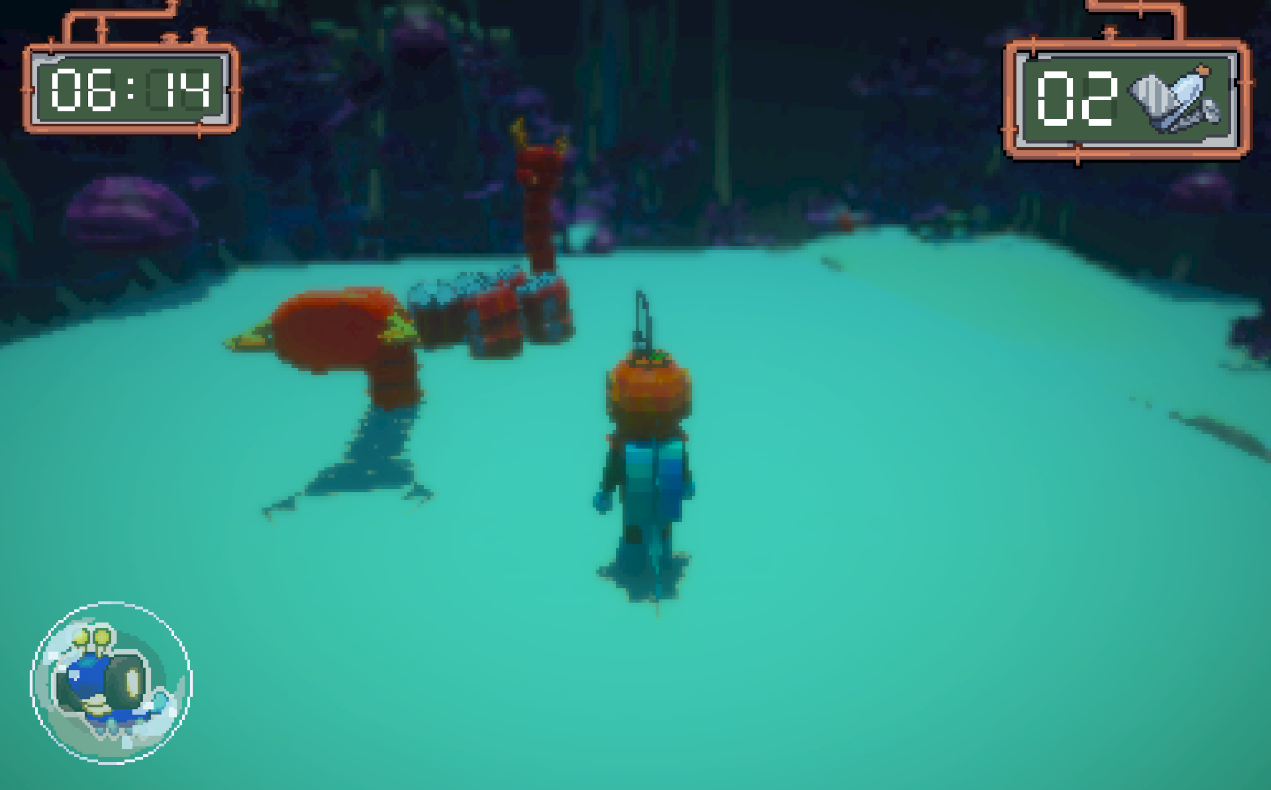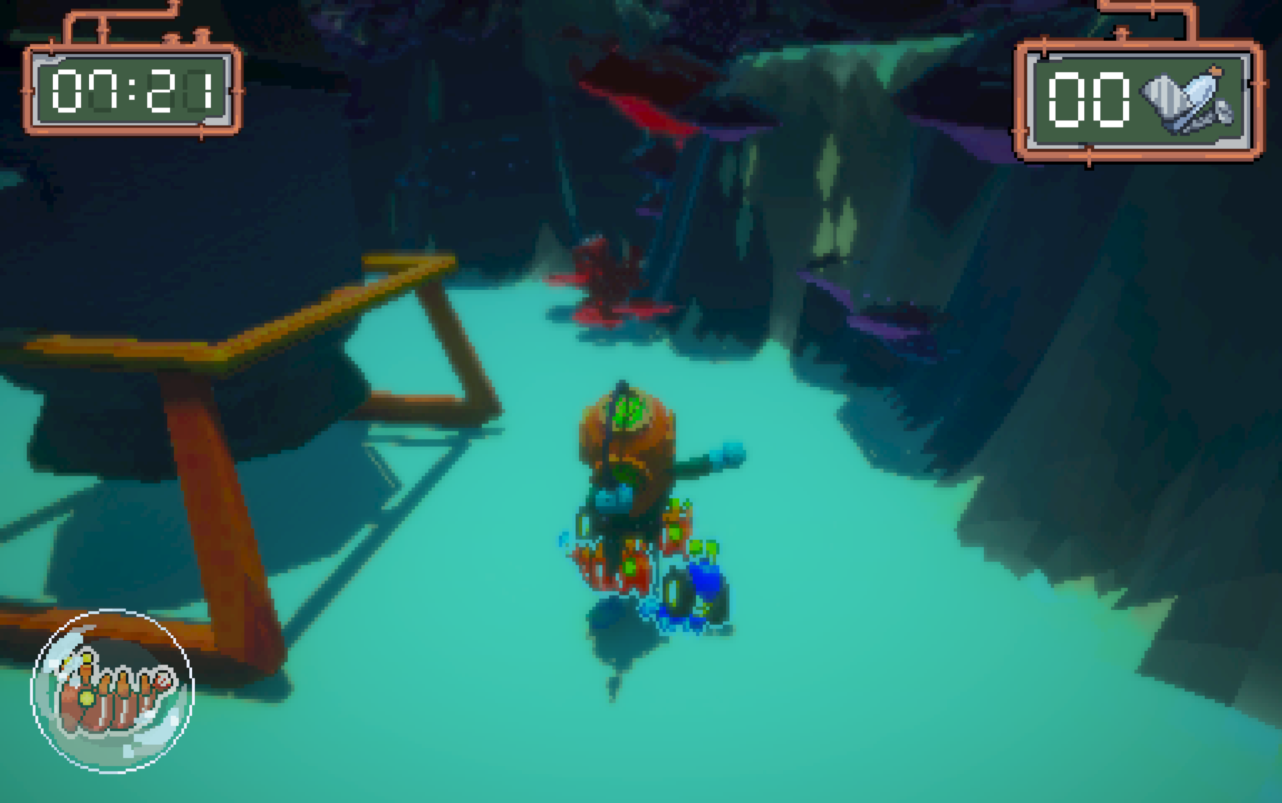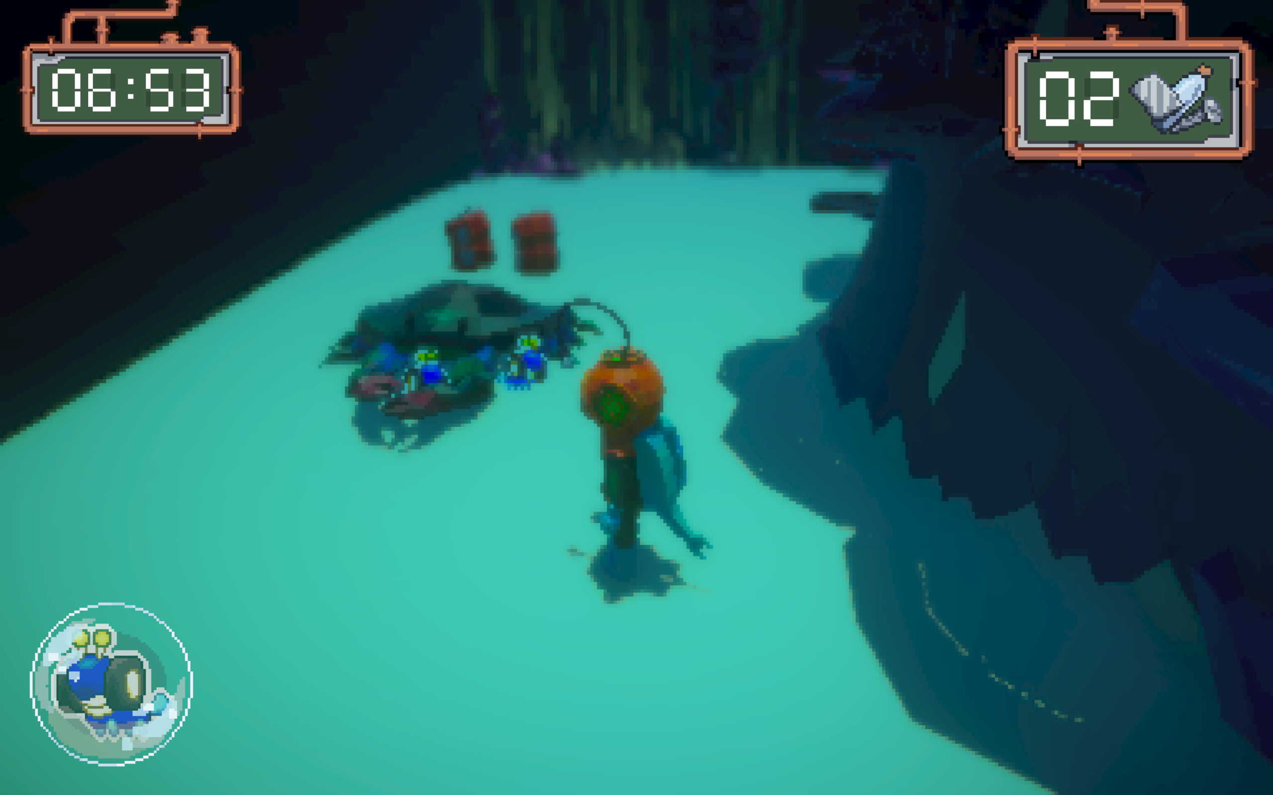 You're a diver sent to clean up the trash from a coral reef with the help of bots. Use the trash you collect to clean to make more bots to help you clean it up within the given time! Make it back to the base before the Oxygen-timer reaches 0, or else...