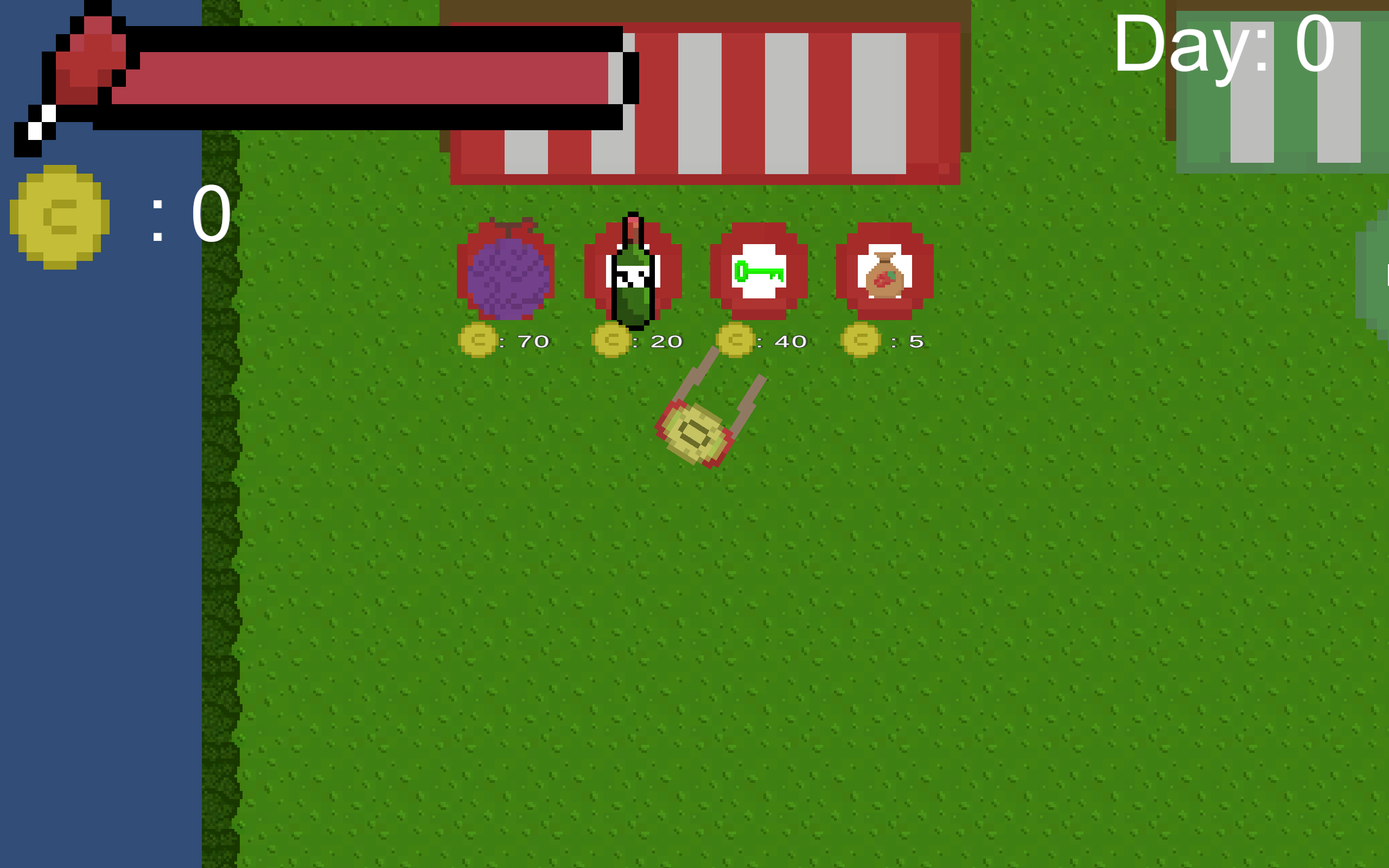 Man ist ein Farmer mit einem Inventar-Slot. Das Ziel ist so lange wie es geht zu überleben und mit den Verkauften Lebensmittel neue Sachen freizukaufen. Wichtig ist nicht zu verhungern und man muss zusätzlich schauen, dass seine angebauten Pflanzen nicht verrotten. Mit Ofen und Mühle kann man neue Items craften und die dann teurer verkaufen.