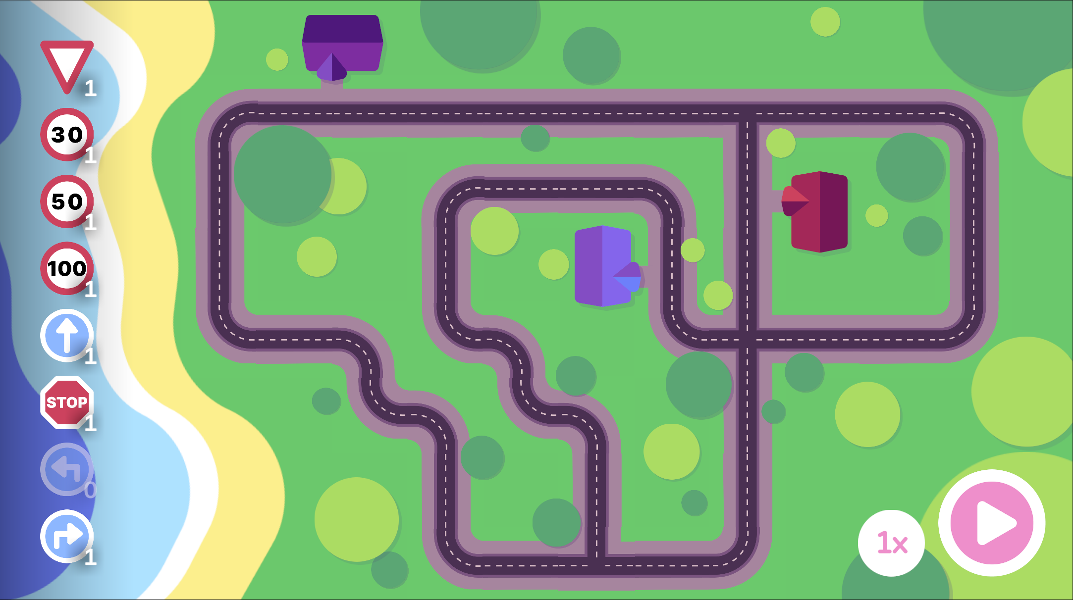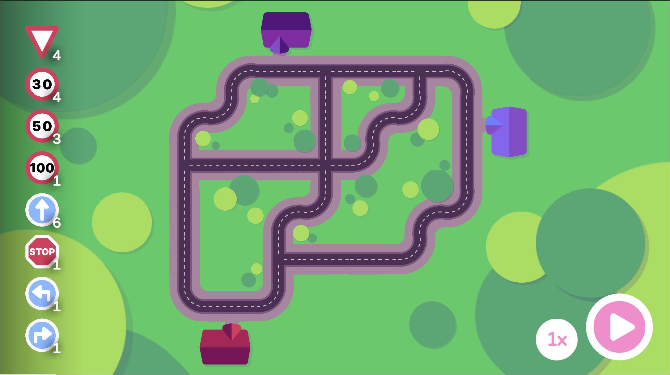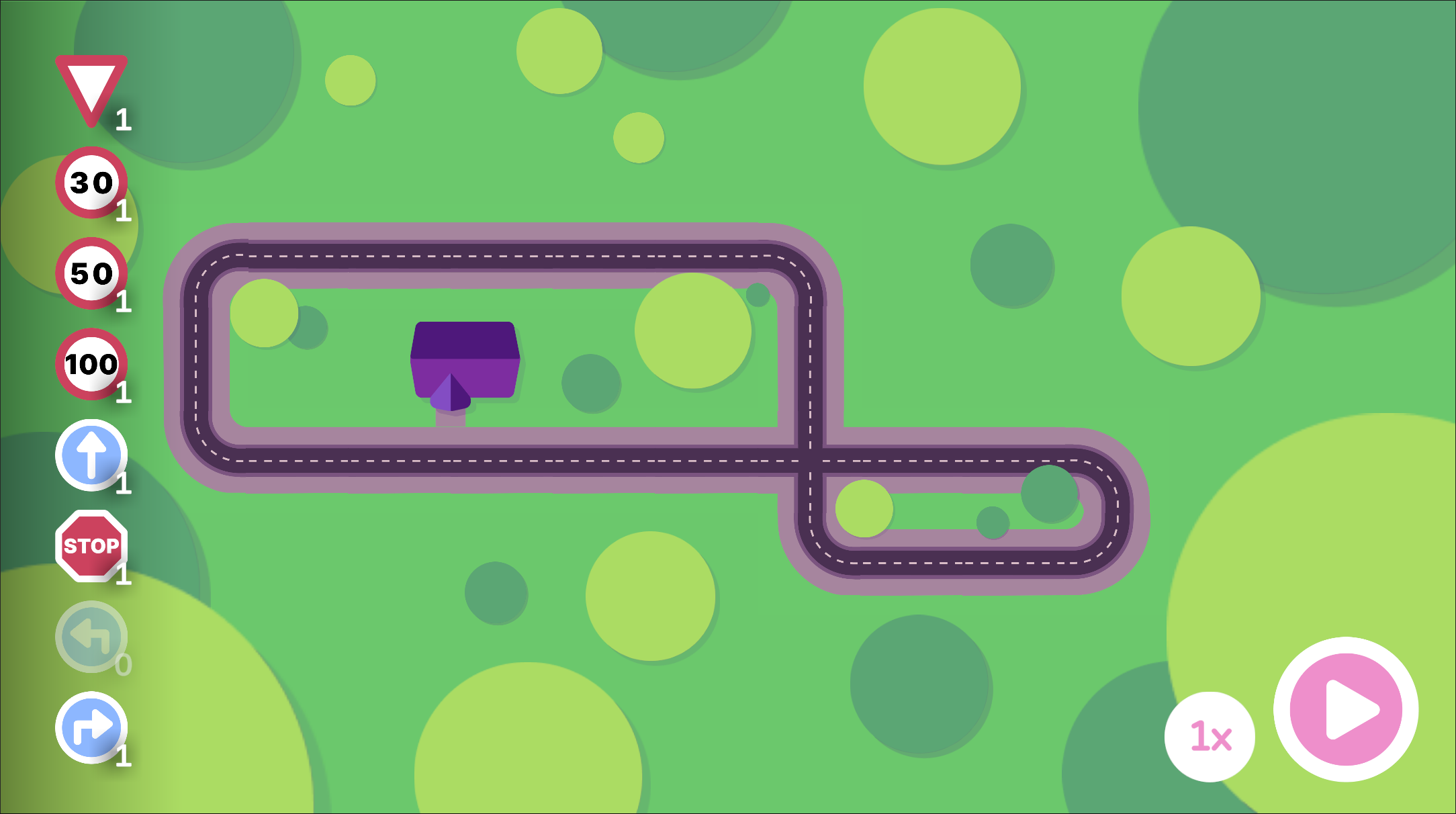 In "Traffic Control" versucht man, Autos vor Unfällen zu schützen. Es können dazu Schilder auf Straßensegmente platziert werden, um das Fahrverhalten zu steuern. Um ein Level abzuschließen, muss die dazu vorgegebene Stoppuhr überschritten werden.