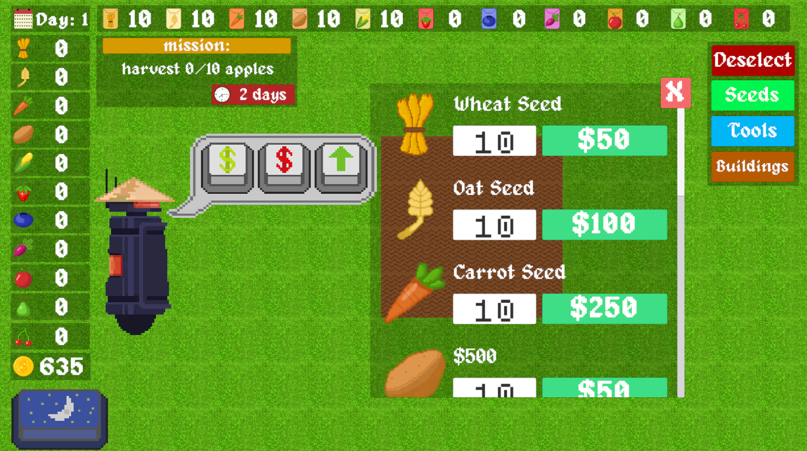 Cozy Farming game, in welchen man versucht ein Dorf vor dem Verhungern zu Retten. Arbeitet euch durch verschiedenste Missionen und Pflanzenarten durch um die Bewohner zu Retten. Doch passt auf, der Winter kommt.